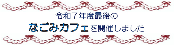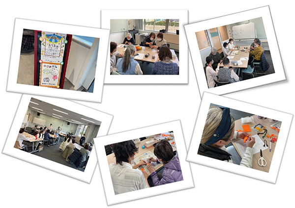 令和8年3月13日(金)、 まなびあテラスにて、今年度最後のなごみカフェを開催しました。今回は、カギ編みやONSEIを使用したあたまの健康チェック、ロバ君マスコット作り、個別相談などいろいろなテーマに分かれて開催しました。