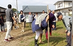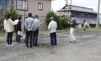 実はこの地区、昨年度から「認知症声かけ訓練をぜひ自分たちの地区で開催してみたい」と言っていただいていた地区となります。地区住民をはじめ、事業所やキャラバンメイトの方にも協力いただき、総勢84名での訓練となりました。訓練終了後は、認知症の人を地域でどのように見守るかなど意見交換会も行いました。「あいさつから始めてみよう」「登下校中の子どもたちが見守り役になれるかも?」などの意見が出されました。声かけ訓練終了後は、地域のみなさんのご厚意で、いも煮と新米のおにぎりの差し入れもいただきました。