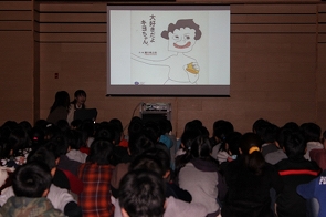 読み聞かせグループ「ぶーけ」5,6年生に読み聞かせをご覧ください。