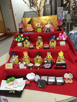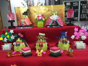 毎日、寒い日が続いていますが、かわいいおひな様にほんわか心も暖かくなり、少しだけ春の足音を感じました!!