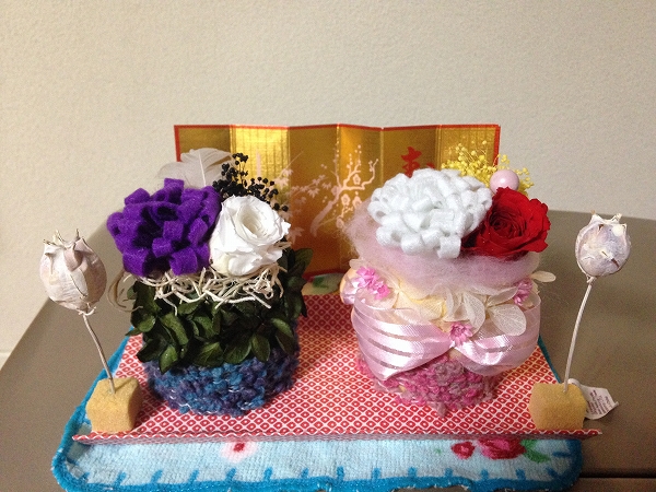 タントクルセンター、ファミリーサポートセンターでプリザーブドフラワ―でつくったおひなさまを発見!