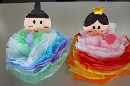 ファミリーサポートの職員が作成したおひなさまもかざってありました。