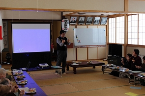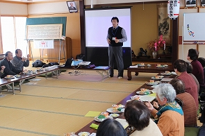 2月19日(木)、小田島地区東「東いきいきサロン」が開催されました。東根市社会福祉協議会 常務理事兼事務局長 佐藤信行が高齢者の方が元気になる話をし、その後、電子シアターによる民話、紙しばい、ゲーム等を行いました。最後は、「手紙~親愛なる子供たちへ~」詩の朗読を行いました。