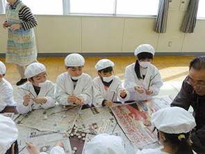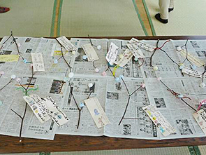 1月25日(水) 高崎公民館で、高崎小学校の児童のみなさんと高崎地区の老人クラブのみなさんの協力で、『だんご木』を作って頂きました。