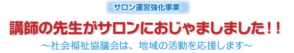 「住み慣れた地域の中で、いつまでも暮らし続けるために お互いが支え合う」ふれあいいきいきサロンを通じて、地域の「絆づくり」、「居場所づくり」、「仲間づくり」を応援していきます。