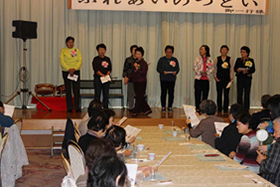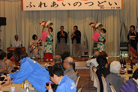 10月17日に、第4回さくらんぼひがしね元気隊を行いました。 今回は、東松島市の応急仮設住宅の一人暮らし高齢者が参加する「ふれあいのつどい」にお邪魔しました。すみれ会が童謡や唱歌を、松風会が民謡や踊りなどを披露していただきました。最後は、すみれ会と松風会が合同で、「ふるさと」を合唱し、会場が一体となって盛り上がりました。 ボランティアの皆様、ありがとうございました。 |  |  |  |