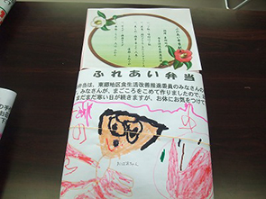 かわいい絵を描いて下さりありがとうございました!!」2月3日(月)東郷地区食生活改善推進員のみなさんより、ふれあい弁当を手作りして頂きました。