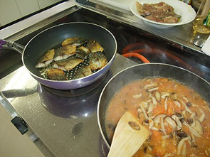 調理室を満たす、ご飯の炊ける湯気や煮物の香り、脂ののった鯖がパチパチと焼き目をつける音。テキパキと役割分担を決めて盛り付け作業を行うみなさんの、真剣な表情。