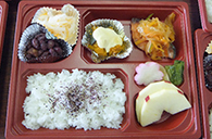 日頃から健康の為に、減塩と栄養バランスなどを考えて作っているみなさんなので、ヘルシーなかぼちゃの豆腐グラタンや、鮭のあけぼの焼き・見た目も色鮮やかな紅白なます・煮豆・くだもの・漬物など旬の色とりどりの材料で、手際良く料理が作られ、栄養満点の美味しそうな弁当が出来上がりました。