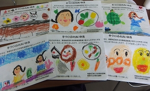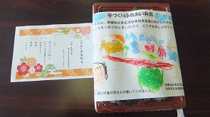 今回の弁当の包装紙は、東部こども園の園児のみなさんが、絵を描いて下さいました。