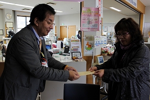 ご寄付をいただきました。 3月14日(月)、かぼちゃの会様より、13日(日)タントクルセンターで開催された「かぼちゃの会チャリティコンサート」の売上金からご寄付をいただきました。 かぼちゃの会からは、平成19年度より毎年継続してご寄付をいただいております。 ありがとうございました。地域福祉推進のために使わせていただきます。  |