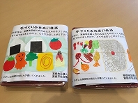 今回の弁当の包装紙は、ひがしね保育所のみなさん、東根児童センターのみなさん、本郷児童センターのみなさんが、かわいい絵を描いて下さいました。
