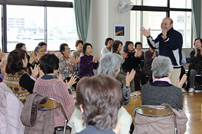 参加者のみなさんは、懐かしい歌や季節の歌を、一人では歌えないけれどみんなと一緒ならいいと大きな声で歌い、若い頃にもどったように活き活きしていました。