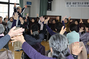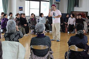 後半は、音楽療法士の冨樫さち子さんと吉田京子さんより「歌って笑って楽しい時間」と題して音楽をとおしての活動を行いました。冨樫先生には5年間毎年ご協力いただき、先生との活動を楽しみにしているファンの方もたくさんいらっしゃいます。