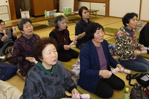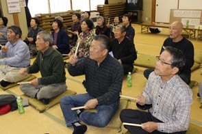3月9日(水)、長瀞地区「南十字サロン」にて冨樫さち子先生、柴田みゆき先生と「歌って、笑って楽しい時間」と題して、音楽をとおした活動を行いました。当日は、農協の別な事業と重なり参加者は18名でしたが、8名も男性参加者がいて、びっくりしました。