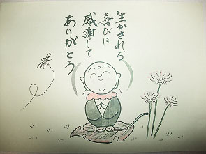 また、恒例の事務局長が書いたイラスト入りの「ありがたい言葉」をみなさんにお渡ししました。みなさんからは、とても喜んでいただきました。