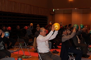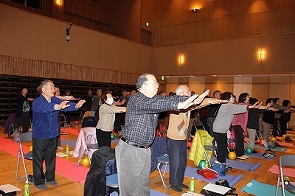 当日は、サロンで役立つメニューを学ぼうということで、サロンの講師派遣で人気が高い、小野淳子先生をおよびして、「サロンで役立つ体操を学ぶ」と題して、体操を習いました。参加者からは、「手軽に気軽に、そして楽しくできる内容で楽しいひとときでした。」「地域に帰り、少しでも実行したい。」「ぜひサロンで取り入れたい。」など大変好評でした。習った体操は、サロンでぜひ、活用いただければと思います。