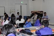 市内のボランティアをしている3名の方から、実践事例報告会、その後は、「自分たちにできる、自分たちがやりたいボランティア活動を考えよう!」ということで各班にわかれてワークショップを行いました。