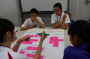 こんなことが、好き。こんなことが得意。今、やってみたいことを各自、班ごと出し合った後に、みんなのために、こんなことができないか、こんなことができるのではないかと具体的な活動の案を出し合いました。