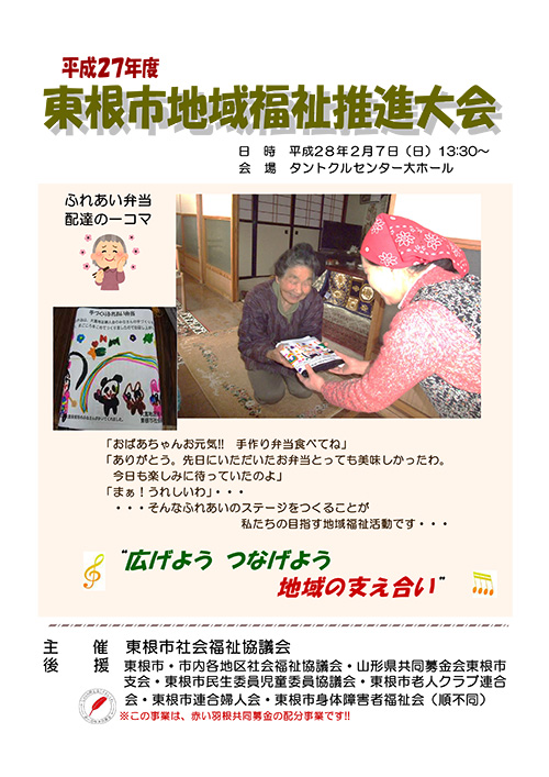 2月7日(日)「広げよう つなげよう 地域の支え合い」を大会スローガンに「東根市地域福祉推進大会」を東根市タントクルセンターの大ホールで開催しました。