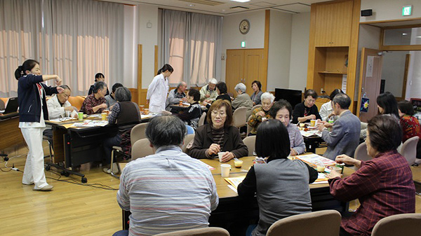 山形ロイヤル病院の管理栄養士 永野 留美氏、言語聴覚士 深瀬 祐子氏から講話をしていただき、その後はお茶を飲みながら情報交換や質疑応答などを行いました。