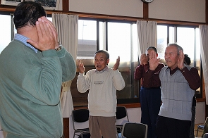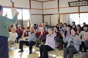 12月12日(土)、東根地区の「東方ふれあいサロンむつみ会」にて、鈴木藤弥先生より楽しいレクリェーションをご指導いただき、みんなで楽しく体を動かしました。