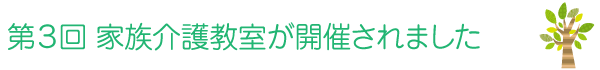 10月21日に東根市職業訓練センターにて家族介護教室が開催されました。3回目の今回は「自立支援を考えよう!」をテーマに、デイサービスまごころ 健康運動指導士 酒井大輔氏を講師に迎え、講話や実技指導をしていただきました。