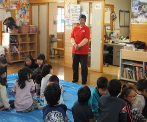 赤十字の芦野さんよりだんごさしのお話、指導をしていただきました。