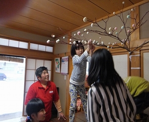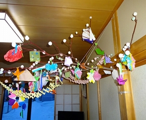 小田島ふれあい交流館に小田島地区の赤十字の方が立派な「ミズキの木」を持ってきて下さり、小田島学童クラブのみなさんとだんごさしを行い、館内をとても賑やかにしてくれました。