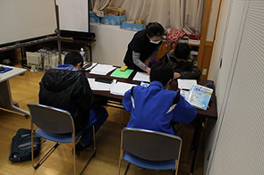 当日は、持参した各自の教科書や冬季ワークを使って、学習指導をいただきました。今年度初めて取り組んだ事業でしたが、PR不足もあり参加者は少なかったのですが参加いただいた親子からは、大変好評でした。