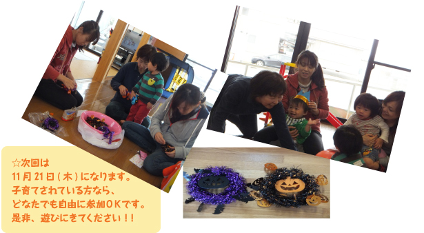 参加の方で、簡単『ハロウィンリース』作りをし、喜んでいただきました。