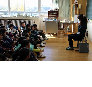 11月16日(月)午前8時20分から東根小学校にて、「おはなしの会 はっぴぃポッケ」(代表 石山千晶さん)による子どもたちへの絵本の読み聞かせがありました。7年前から月に2~3回活動をしているそうです。
