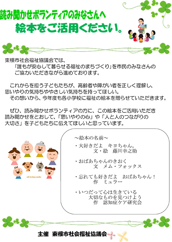 今後も絵本を活用いただき、読み聞かせをとおして、『思いやりの心』や『人とひとのつながりの大切さ』を子どもたちに伝えていただければと思います。