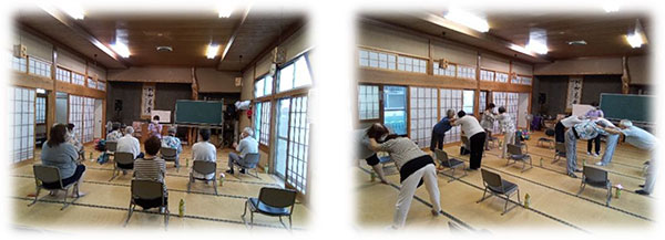 今回は、健康運動指導士の佐藤晃代先生をお招きして、椅子に座って楽しく軽体操を行いました。ストレッチでは参加者から「気持ちいいな~」との感想が聞かれ、みなさん笑顔で運動に取り組んでいました。