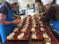 当日は、東郷公民館で9時30分過ぎから作り始め、約30食の弁当を作りました。