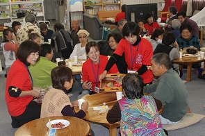 その後、茶巾絞りや抹茶などを振る舞い、交流を図りました。 また、次回活動予定のボランティアグループ輝々とJAたんぽぽ会の方々も同行し、地元の代表の方と打ち合わせを行いました。