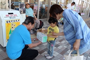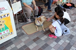 当日は、PR犬とともに、現在、上山市で活躍中の盲導犬も募金活動に参加し、子どもたちや多くの方々がふれあい、盲導犬や視力障がい者の理解を深めるよい機会になりました。