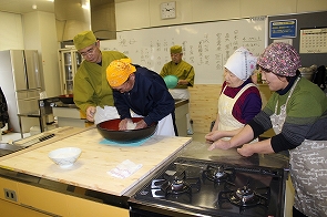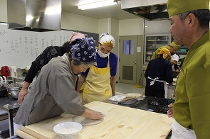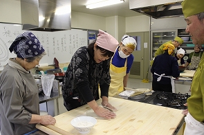 1月26日、東根市職業訓練センターにて、県老連「地域支え合い推進事業」として「そばうち体験サロン」の3回目が開催されました。この事業は、東根市老人クラブ連合会が委託を受けて、地域の老人クラブ員とサロン会員との交流場、仲間づくり、情報交換として双方の会員同士がつながりを持てるように開催しました。
