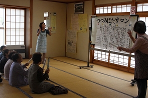 つつみばたサロンは、平成20年2月より毎月1回開催しており、今回で100回目の記念開催でした。サロンを行って約8年経ちましたが、1回あたり25名ぐらいの方が元気に参加しています。東根市のサロンの草分け的存在になっています。