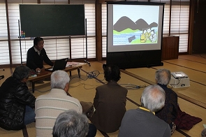 11月8日(土)東根市四ツ家の與次郎会館にて、四ツ家中サロンがありました。東根市社会福祉協議会 常務理事兼事務局長 佐藤信行が「地域における支え合いと高齢者の支援策について」と題して、東根市の高齢化の状況や生きがいづくりの必要性や社会福祉協議会の高齢者支援策について話しました。その後、事務局長の得意な「じごくけんぶつ」の紙芝居と、藤助新田に伝わる民話「人形淵」の電子シアターをしました。