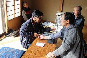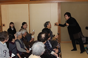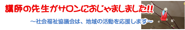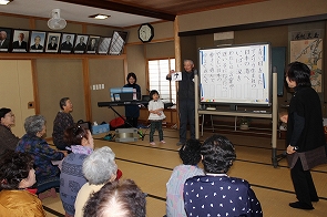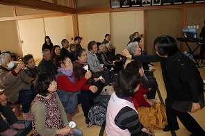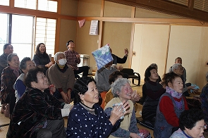 1月17日、東郷地区「向原お茶のみ会」にて冨樫さち子先生、柴田みゆき先生より「歌って、笑って楽しい時間」と題して、音楽をとおしての活動を行いました。ヤクルトの容器で作ったシェーカーやスティックを使ったり、懐かしい歌を歌うなど、参加者のみなさんは、若い頃にもどったように笑い活き活きしていました!!今年で冨樫先生をサロンにおよびするのは、3回目になるのでみなさん、すっかり慣れて声もばっちりでていました。