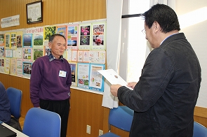 7月下旬からはじまったシニアパソコン教室も、10回目を迎え、教室終了後に閉講式を行い、参加者一人一人に常務理事より修了証を手渡しました。