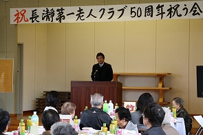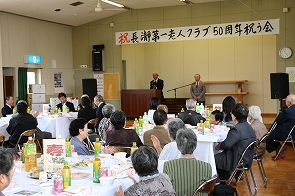 4月18日(土)長瀞公民館にて、長瀞第一老人クラブ50周年を祝う会が会員、長瀞地区社会福祉協議会会長や区長等来賓を含め60名が参加し盛大に開催されました。