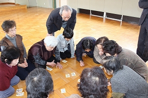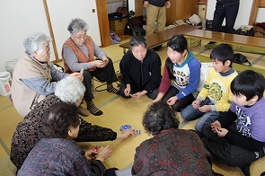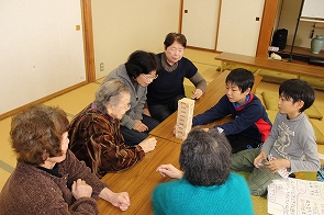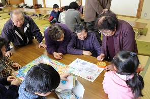 12月10日続き今回は、2回目の交流になります。今回は、子どもたちの自己紹介のあとにカルタ取り、ジェンカ、ウノ、すごろくに分かれてふれあい楽しい時間を過ごしました。遊んだあとは、おばあちゃん方の自慢の漬物で一緒にお茶のみもしました。