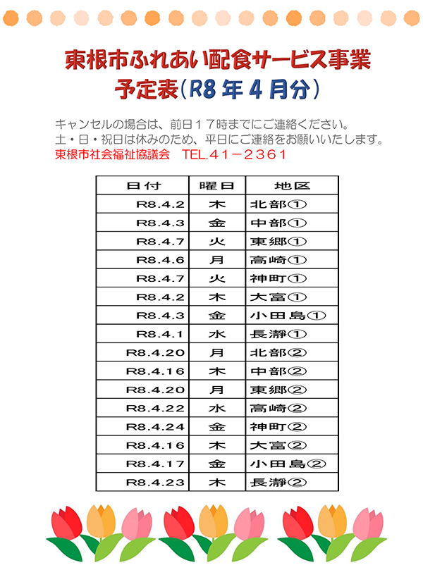 東根市ふれあい配食サービス事業予定表(R8年4月分)