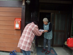 出来上がった弁当は、婦人会のみなさんや地域の方が手分けして利用している方に、温かい言葉を掛けながらお届け頂きました。