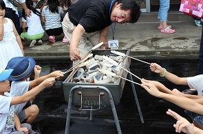 武田の笹かまばこにて、焼きかまぼこ作りと昼食交流会。おいしい海鮮丼を食べ、7月1日オープンした仙台うみの杜水族館を見学し、親子で楽しい時間を過ごし、夏の思い出を作りました。