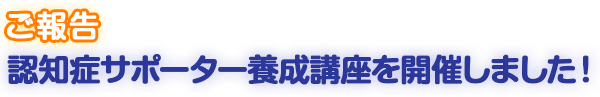 今年度2回目の市民対象として開催しました。講師は特別養護老人ホームおさなぎの小山内智恵氏。わかりやすい内容とDVDを活用しての講座となり、参加者のみなさんからは、「これから認知症の人を自分のできる範囲でサポートしたい」等の感想がありました。