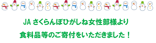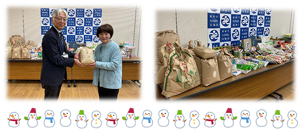 令和7年12月25日、JAさくらんぼひがしね女性部様より食料品等のご寄付をいただきました。届けていただいた品物は、東根市内8支部で行ったフードドライブ活動で集まった食料品や日用品計390点。「物価高騰により食事の量が減っているお子さんがいるという話を聞いて、お米もたくさん持ってきました。生活にお困りの方がいたらぜひ活用してください」という温かいメーセージとともにお預かりいたしました。いただいた品物は、生活に困難を抱え緊急支援を必要とする方や地域福祉推進活動等に有効活用させていただきます。ご協力いただきました皆様、本当にありがとうございました。