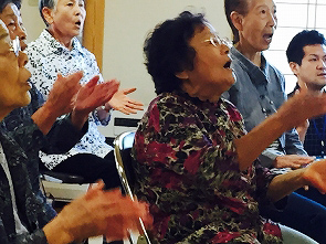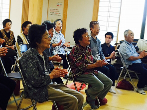 9月28日(月)、大富地区三ッ屋「三ツ屋ふれあいサロン」にて冨樫さち子先生、柴田みゆき先生より「歌って、笑って楽しい時間」と題して、音楽をとおしての活動を行いました。毎回、サロンのはじめに「朝が来た」を歌っているそうで、声がでており、すばらしかったです。